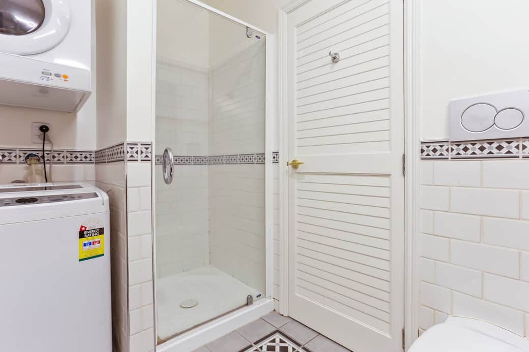 The bathroom is complete with a shower, washing machine and dryer for your convenience.